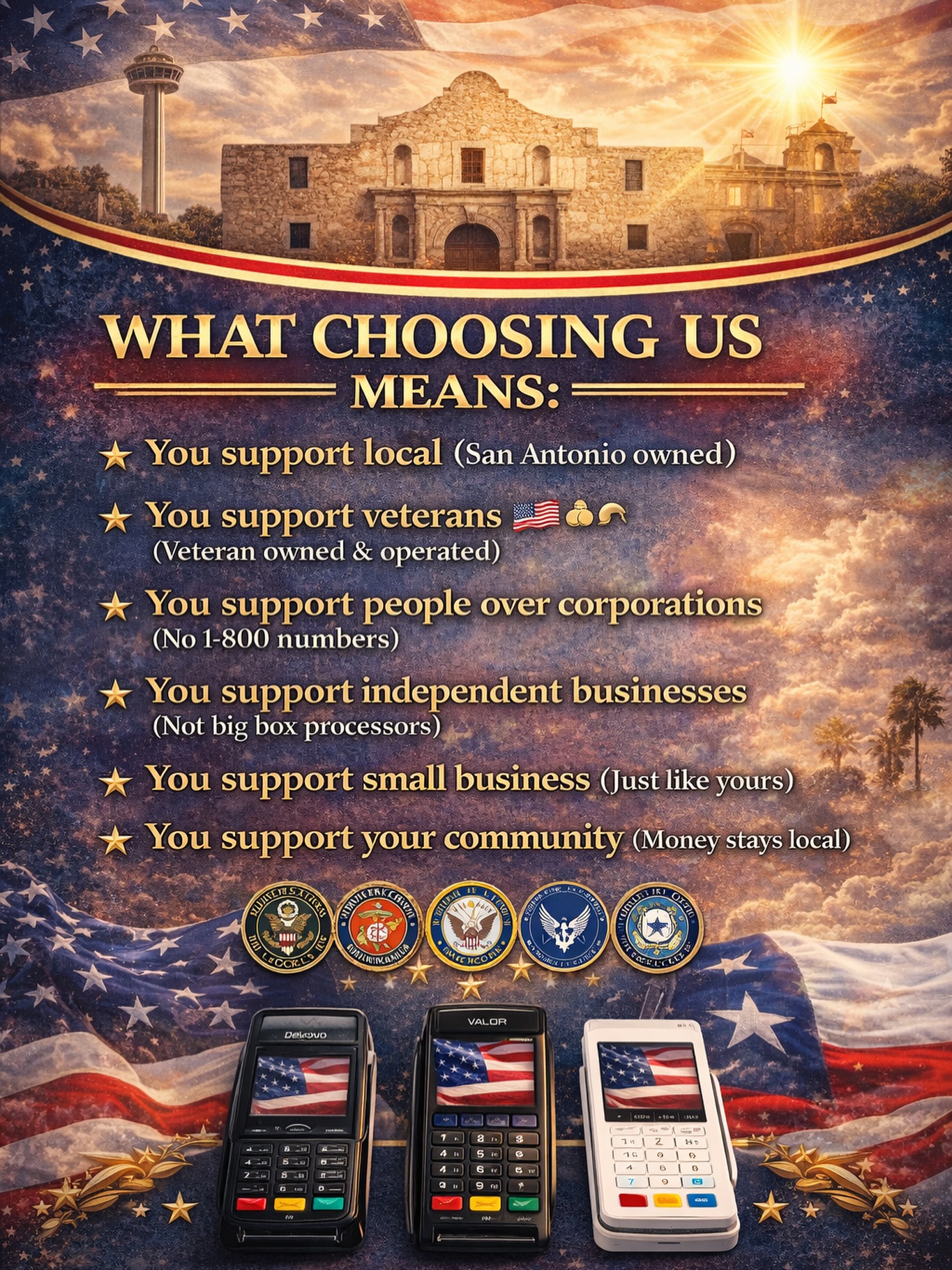 D&G Solutions LLC is a veteran-owned, service-disabled veteran-owned merchant services company based in San Antonio, Texas. We help businesses reduce payment processing costs through transparent, compliant solutions — without long-term contracts or hidden fees.