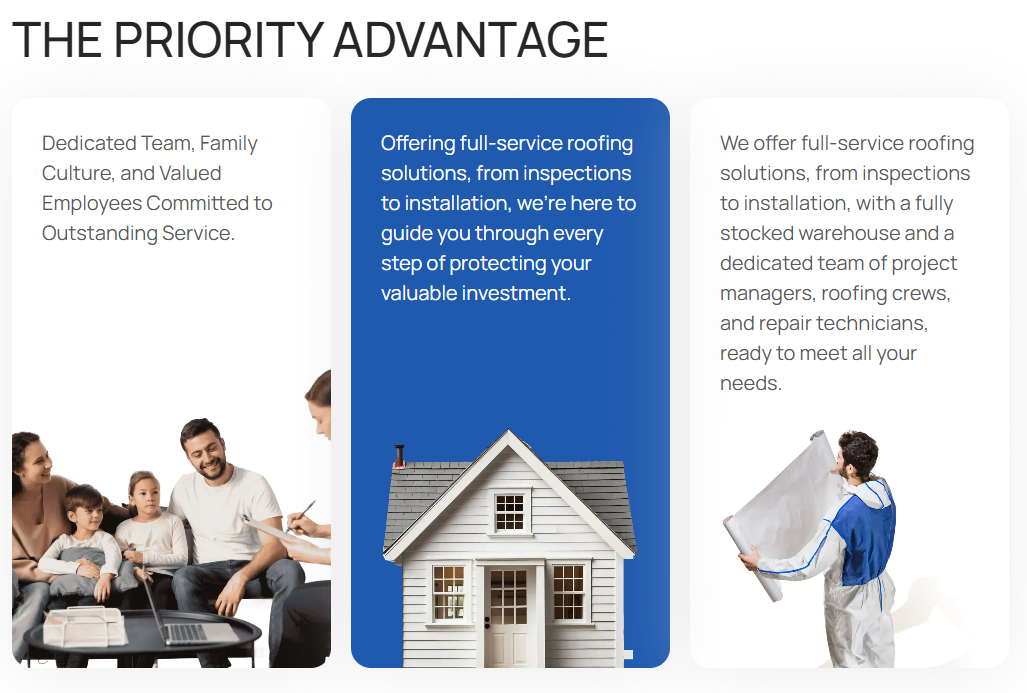 Priority Roofing is committed to delivering top-tier roof repair & replacement for residential, designer, and commercial roofing projects. We stand behind our work, ensuring high-quality, long-lasting protection on every project.